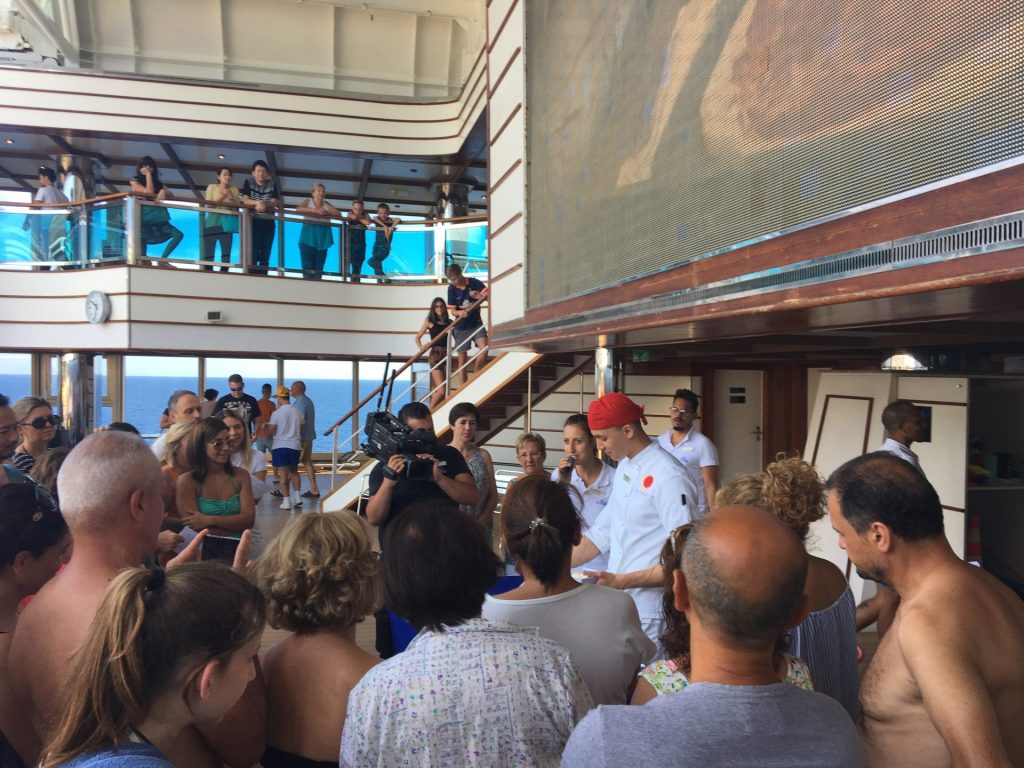 スナックタイムやランチには、プールサイドでクッキングパフォーマンスなども毎日ありました。