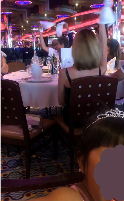 始まる前に突然テーブルナプキンを全員で振り回してテンションを高めるパフォーマンスも!